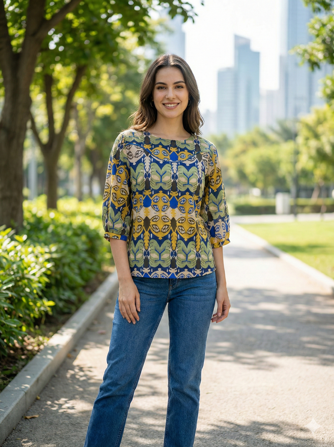 DetailsCrafted from 100% pure cotton, this vibrant kurti/tunic top features a short-length cut in a...